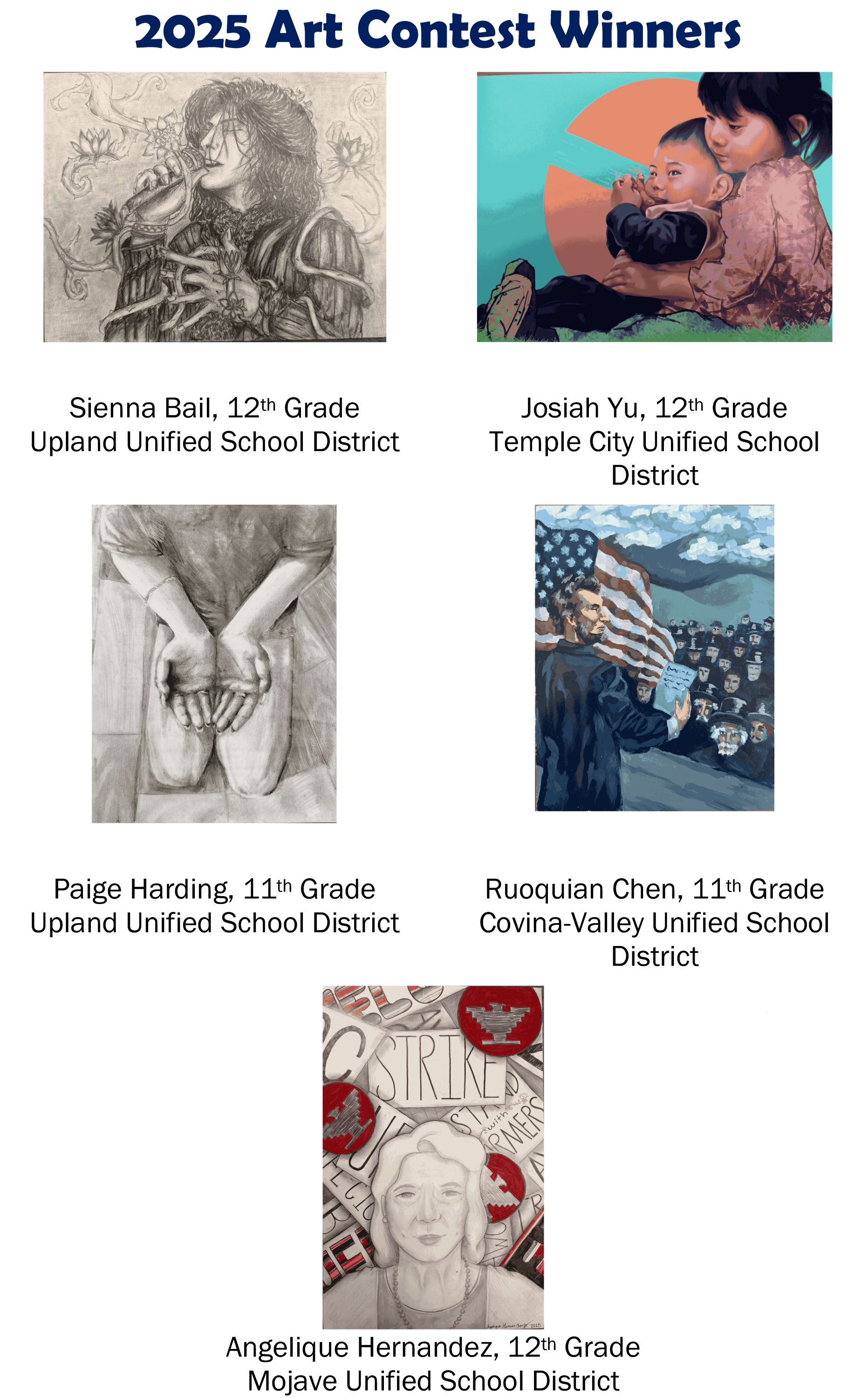 There was a strong turnout this year from students across Northern and Southern California. The school districts from which these students were awarded include: Covina-Valley Unified School District, Mojave Unified School District, Temple City Unified School District, and Upland Unified School District.