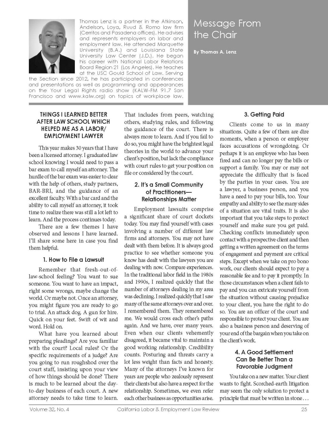 Reprinted with the permission of the California Lawyers Association and the Labor & Employment Law Review.