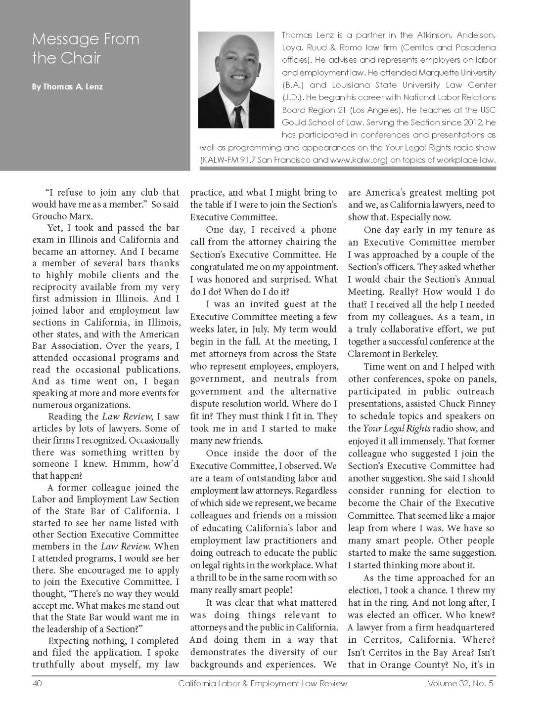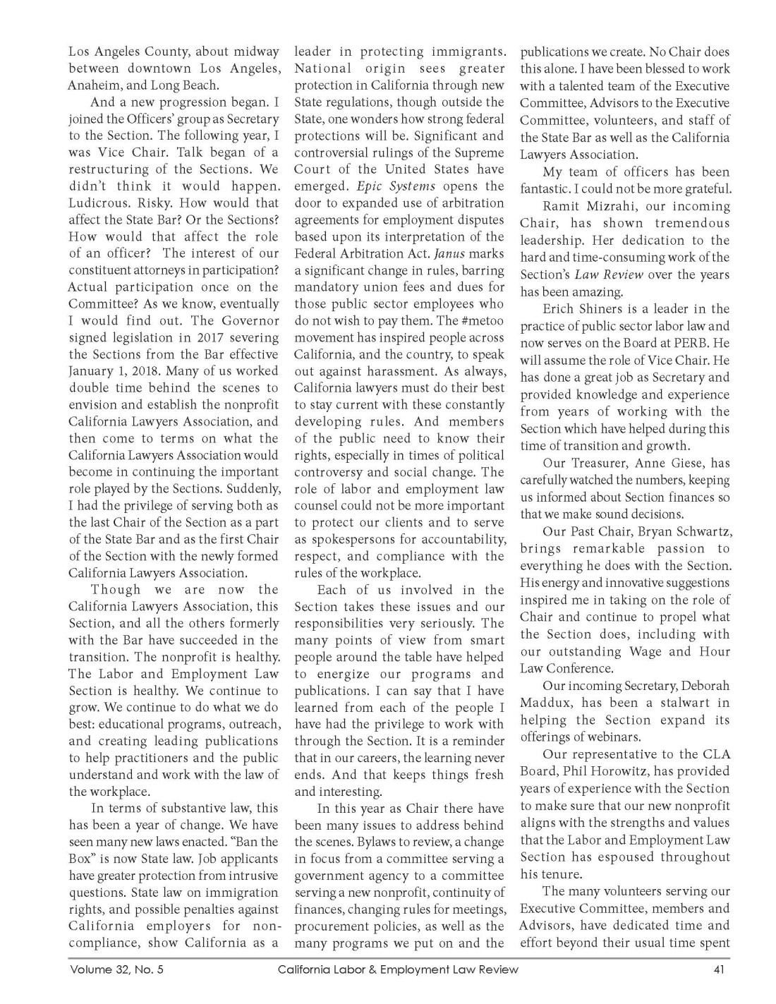 California Labor & Employment Law Review Vol. 32, No. 5, September 2018